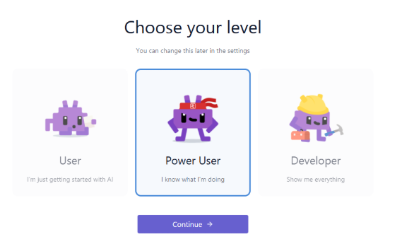 3つの選択肢が出てきますが、後から変更できますので、デフォルトのDeveloperを選択します。