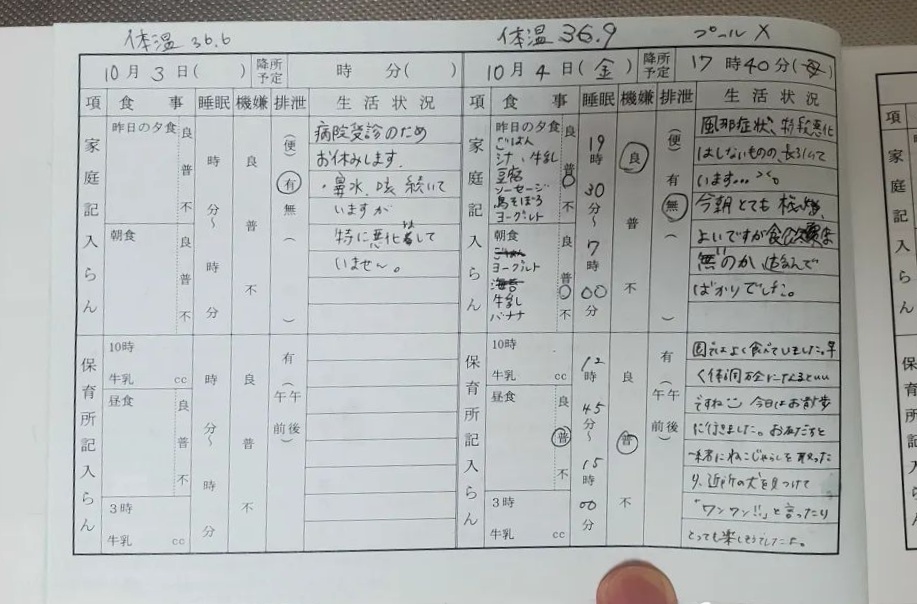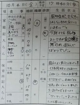 連絡帳は厚みがあるためページによって膨らみがあり、完璧な撮影は難しい状況です。漫画の自炊のように裁断する方法もありますが、連絡帳自体のアナログとしての価値も残したいと考えました。